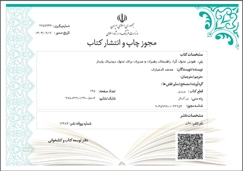 پاسخی است به دغدغه های مدیران و تصمیم گیران سازمانی که با موج تحول دیجیتال » هوش تحولگرا « کتاب